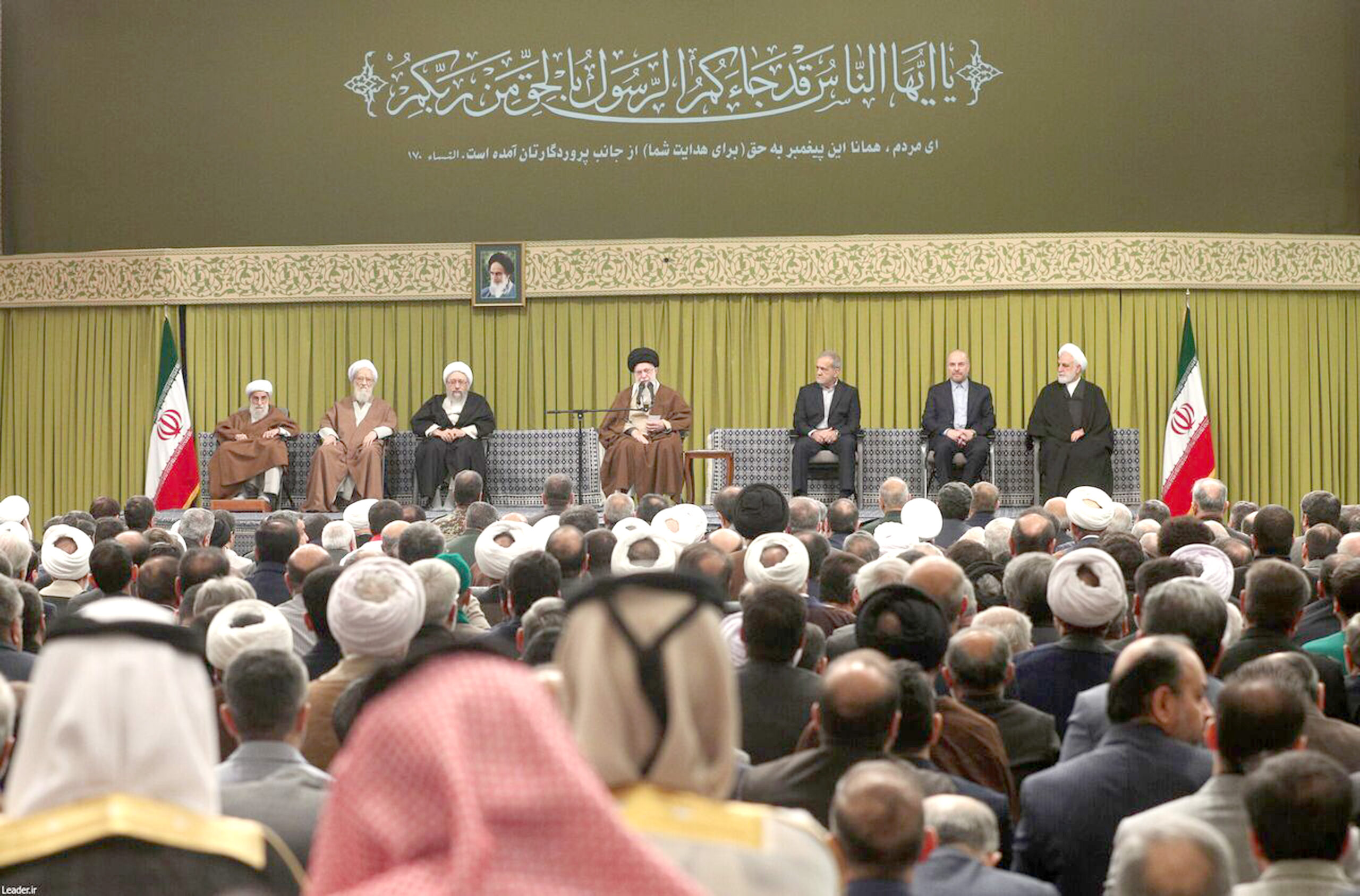 به گزارش بهار، همزمان با سالروز بعثت پیامبر اسلام حضرت محمد مصطفی (ص) رؤسای سه قوه و جمعی از مسئولان نظام، سفرای کشورهای اسلامی و قشرهای مختلف مردم ص با حضرت آیت الله خامنهای رهبر معظم انقلاب اسلامی دیدار کردند.