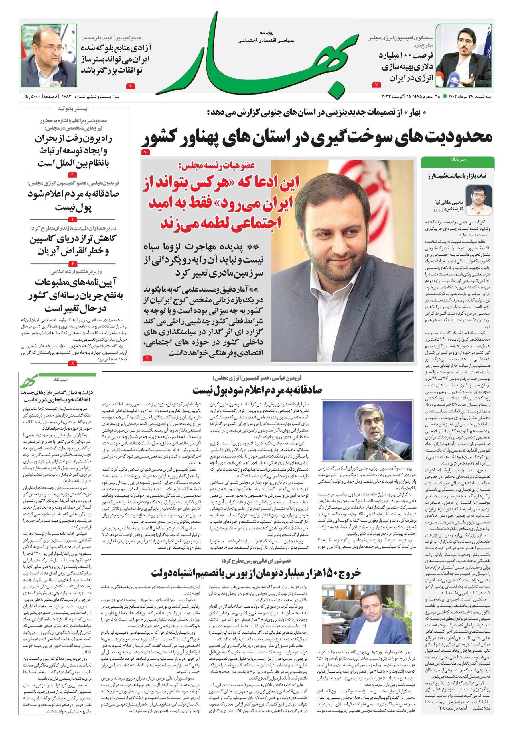 محدودیت های سوخت‌گیری در استان های پهناور کشور هرکس بتواند از ایران می‌رود راه برون رفت از بحران صادقانه به مردم اعلام شود پول نیست صادقانه به مردم اعلام  شود پول نیست کاهش تراز دریای کاسپین و خطر انقراض آبزیان آیین‌نامه‌های مطبوعات به نفع جریان رسانه‌ای کشور فرصت ۱۰۰ میلیارد دلاری بهینه‌سازی انرژی در ایران آزادی منابع بلوکه شده ایران می‌تواند بسترساز توافقات بزرگتر باشد ثبات بازار با سیاست تثبیت ارز خروج ١۵٠هزار میلیارد تومان از بورس گشایش بازارهای جدید